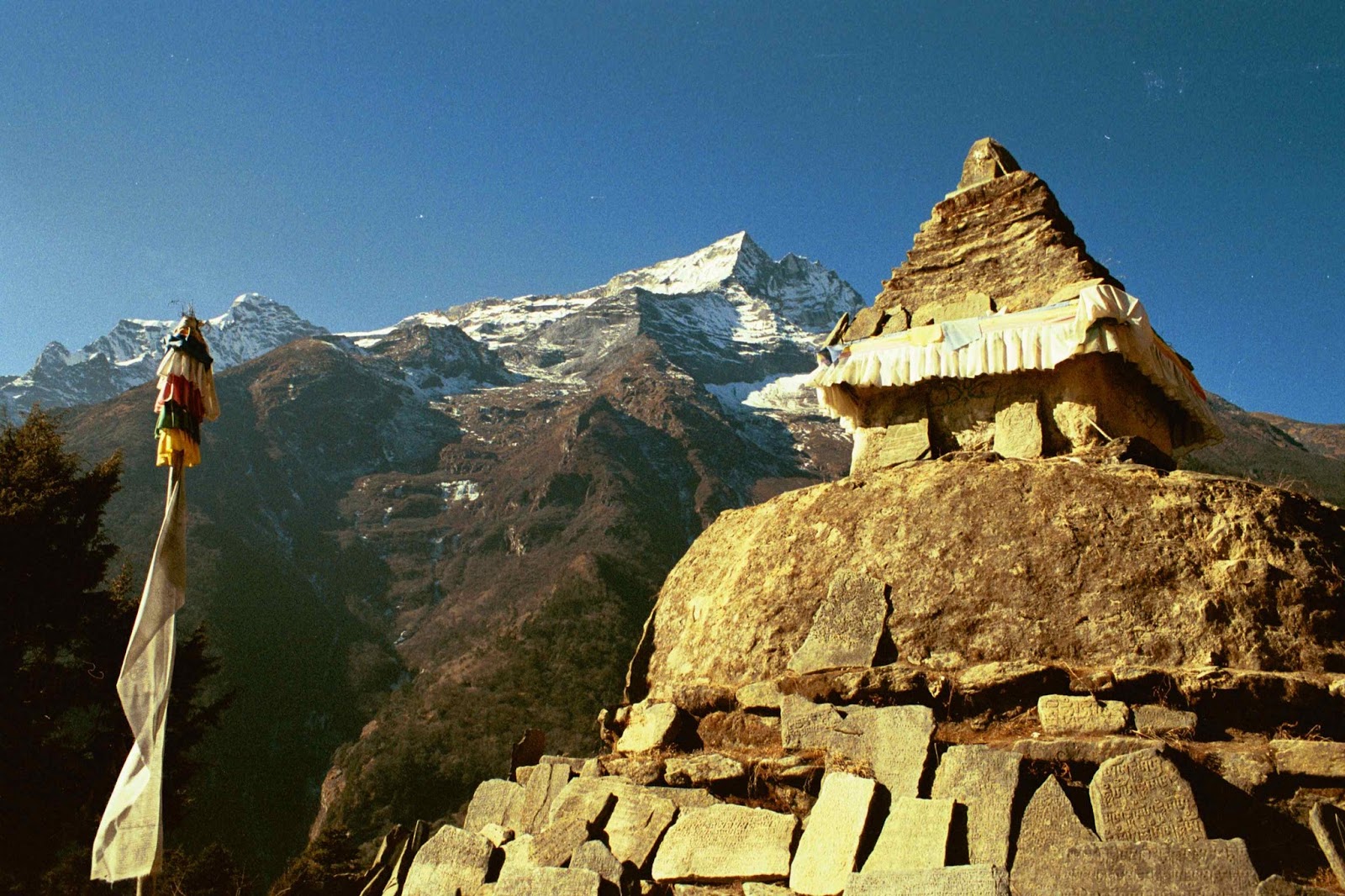Crossed the bridge, then slogged up the hill to Kyanajuma where we had a good lunch of fried rice. The afternoon was characterised by a superb ‘balcon’ walk to Namche Bazar, which we reached at 1500. Before we descended to the campsite we visited the Sherpa Museum that had a good display of Everest memorabilia.